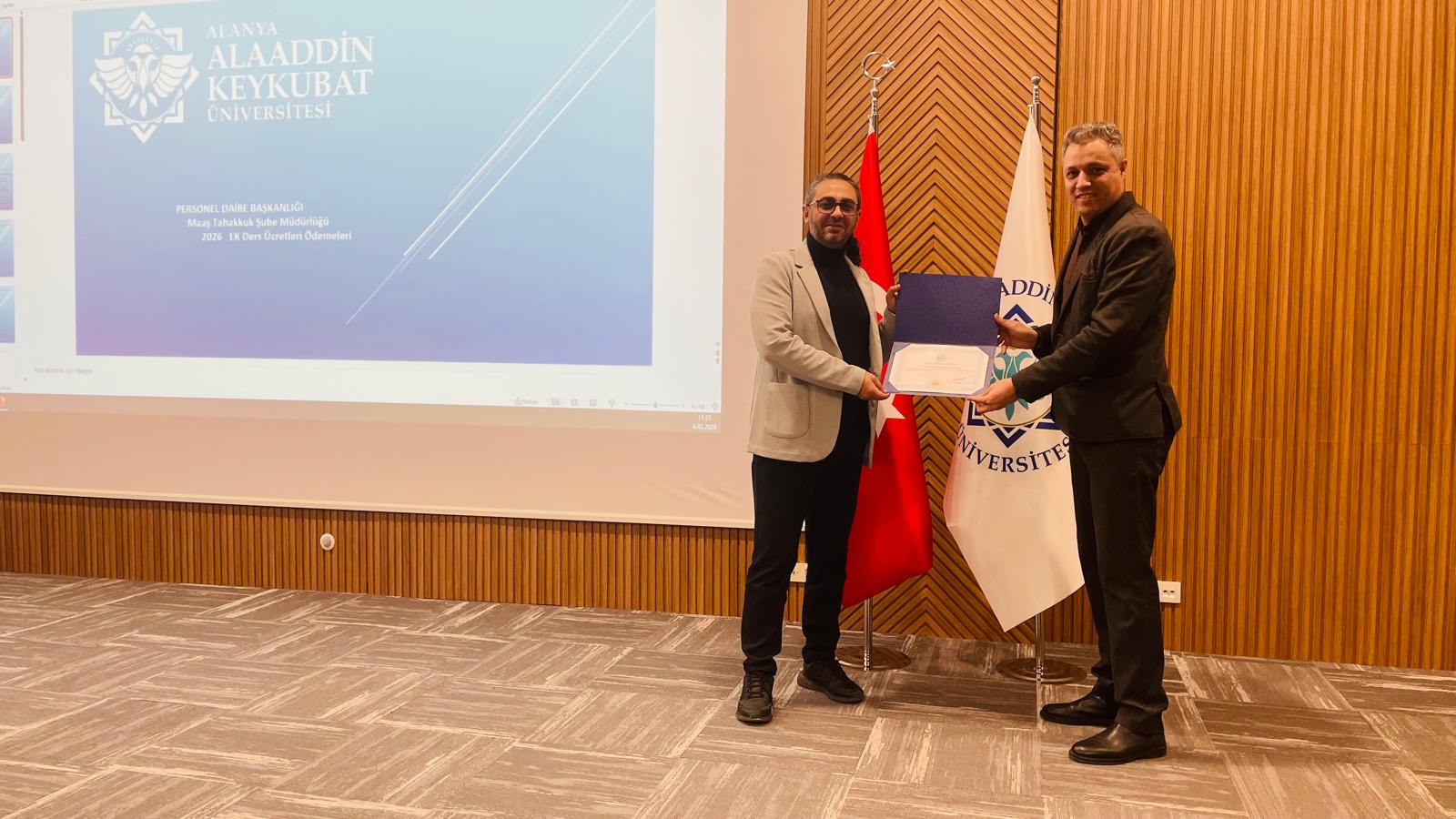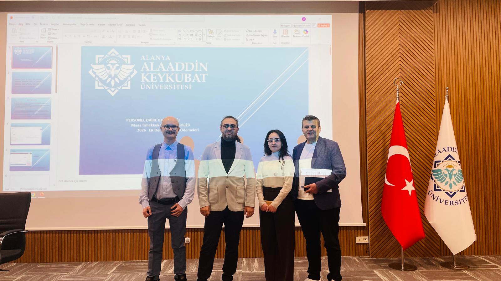 Alanya Alaaddin Keykubat Üniversitesi (ALKÜ) Personel Daire Başkanlığı tarafından 2026 yılı Hizmet İçi Eğitim Plan’ına istinaden idari personele yönelik “Maaş ve Ek Ders Programları Eğitimi” konulu eğitim semineri verildi.